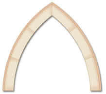 Arco conopial: Es un arco muy utilizado en el gótico flamígero, tiene forma de quilla de barco pero invertida, y cuenta con cuatro centros, dos interiores y dos exteriores.